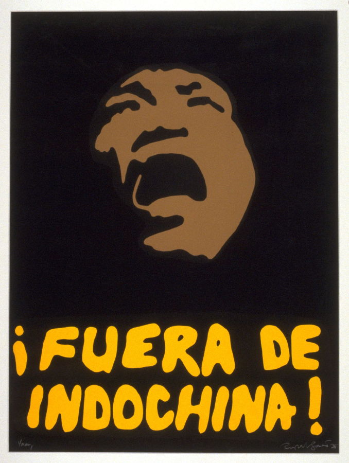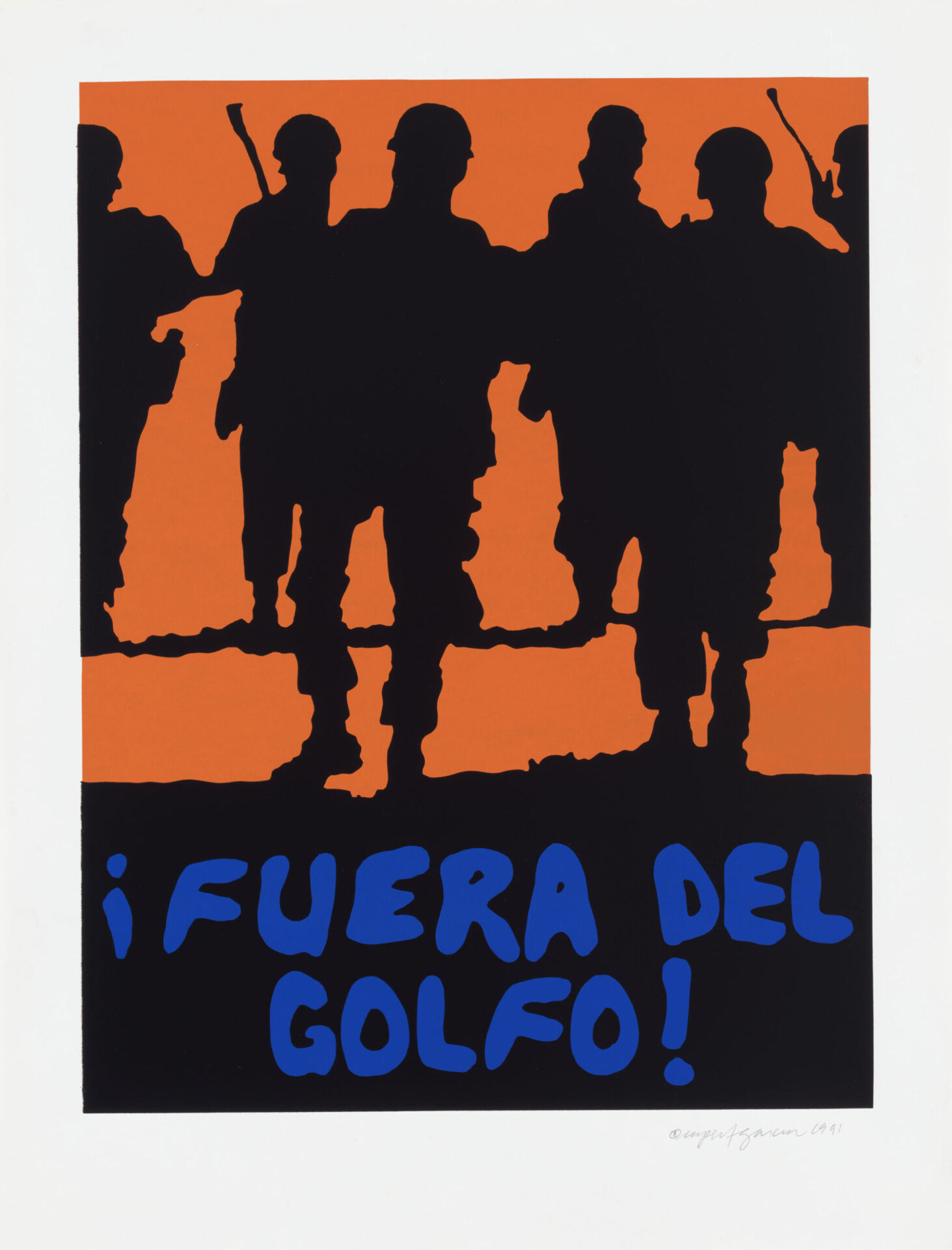 The following interview took place at Magnolia Editions on November 30, 2017 on the occasion of the publication of Rupert Garcia’s new print edition Hoodwinked. The print will be shown as part of “Rolling Thunder,” a show of prints and paintings exploring fifty years of American military involvement in conflicts from Vietnam to the Gulf War and beyond.